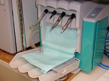 紙コップ、紙エプロン、診療台の枕カバーはディスポーザブルのものを使用して患者さま毎に交換しています。また、当医院では手洗い後、タオルで手を拭きません。なぜなら、何度も使用したタオルを使用すれば再び雑菌がつくからです。従ってペーパータオルを使用し、使い捨てにしています。