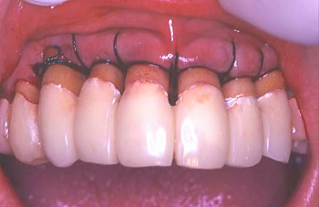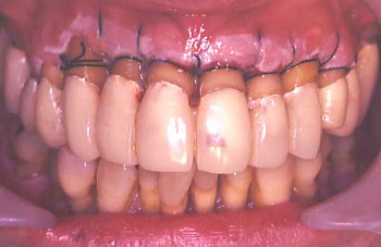 I 歯肉縫合後仮り歯を入れた状態。